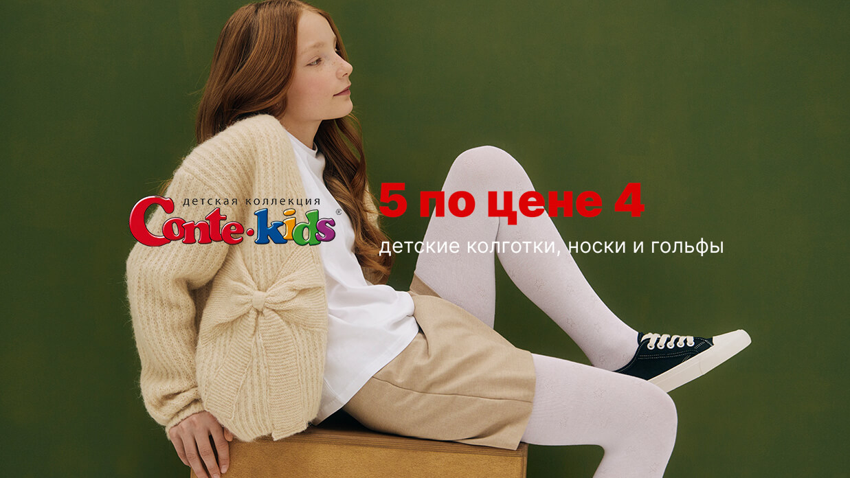 Только по 1 сентября в магазине CONTE в Парк Сити действуют специальные предложения 5 по цене 4 на детские и женские коллекции носков, колготок и гольфов, а также на мужские носки.