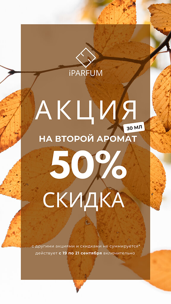Купите любой парфюм и получите второй объем 30 мл со скидкой 50%!