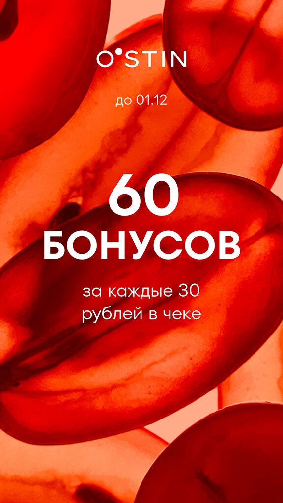 / O’STIN Начислим 60 бонусов за каждые 30 рублей в чеке!