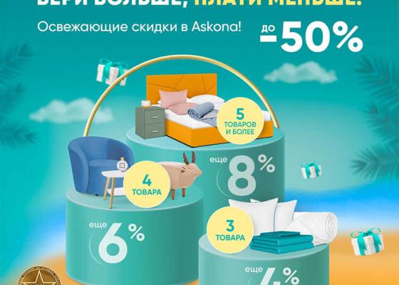 В Askona найдется то, что нужно именно вам: анатомические матрасы и подушки, диваны и кровати, постельное белье и другие товары для здорового сна.
